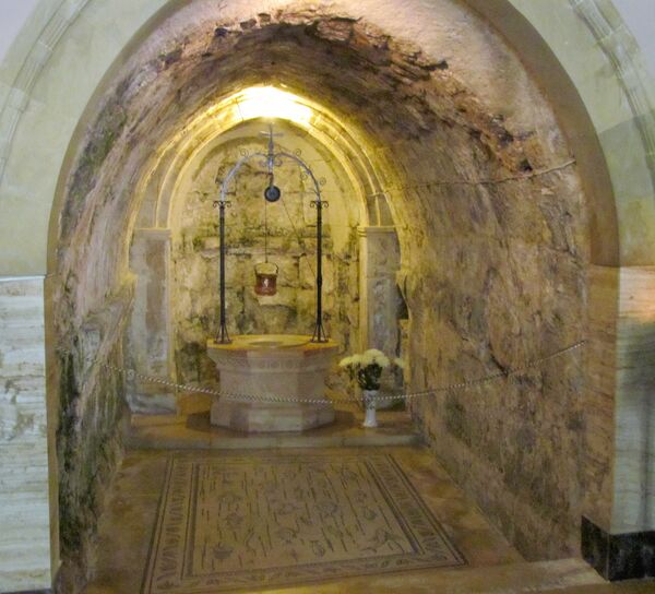 Первый этаж церкви занимает крипта с гротом[2]. Этот грот заканчивается колодцем с небольшим родником, известным как «малый родник», из которого Иоанн и его родители, по преданию, пили воду[3].