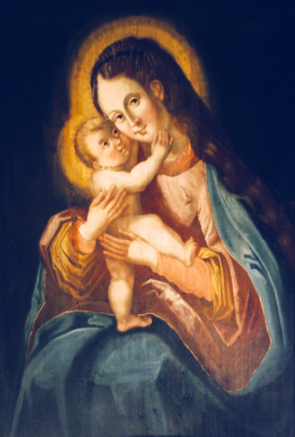 Упомянутой эпитафией был образ Девы Марии-Помощницы, который супруги Мудрак[7] подарили в 1678 году приходской церкви. Изначально он висел у купели в часовне св. Иосифа старой приходской церкви. Оттуда он был позже взят и повешен между двумя храмовыми окнами. И там он не оставался долго, в 1731 году он был опять перемещён, а его место заняло изображение тогда недавно беатифицированного Петра Фоуриера. Картину Девы Марии использовали как малый алтарный образ; так она не привлекала к себе особого внимания вплоть до 1746 года — тогда 23-го декабря она была опять перемещена, на этот раз в клуатр, так как лучшего места не нашлось; после нескольких недель образ там даже развалился на три куска. Тогда наконец о нём позаботился преподобный Якоб Эрбсманн (Jakob Erbsmann), старец здешнего монастыря, заказал её починку и повесил на монастырскую стену за церковью.[8] Постепенно у неё начали почти ежедневно собираться набожные христиане; они украшали образ цветами и почитали Богородицу молитвами и пением. Уважение постоянно возрастало, многие приходившие находили утешение и помощь.