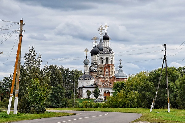 Церкви выстроена в стиле московского барокко, имеет крестообразную форму, барабан венчают пять куполов[1]. Церковь имеет три придела: