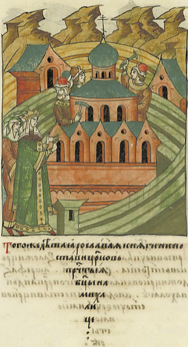 Томь же лѣтѣ постави церковь княгыни Ярославляя на Михалици манастырь святыя богородиця Рожьство, игумению поставиша Завижюю посадника.