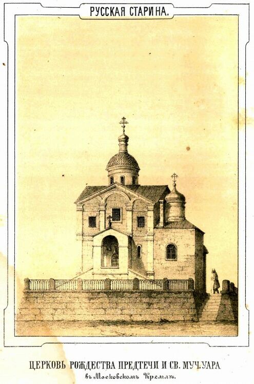 С северной стороны Верхоспасского собора находилась церковь, устроенная царём Михаилом Фёдоровичем, одновременно с соборною церковью, во имя святого великомученника Иоанна Белгородского, имя которого носил царевич Иван Михайлович. Переименована в Предтеческую при Иване V Алексеевиче.