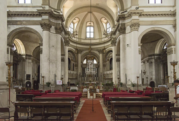 Внутреннее убранство церкви достаточно сдержанное. Примечательны алтарь и его пресвитерий с двумя статуями Святого Петра и Иеремии (созданы в 1798 году) работы Джованни Феррари. Алтарный фон украшает монохромная фреска Агостино Менгоцци Колонны, изображающая двух ангелов, поддерживающих земной шар. Работа Пальмы Младшего «Богоматерь на коронации в Венеции святым Магнусом») украшает четвёртый алтарь. В церкви есть скульптуры Джованни Марии Морлайтера (Мадонна Розария) и Джованни Марчиори (Непорочное зачатие).