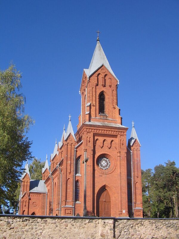 Строительство шло три года. 22 мая 1905 года был освящён краеугольный камень, а 3 декабря 1907 года построенный храм был освящён. Храм был возведён в неоготическом стиле из красного кирпича, автором проекта был архитектор Михаил Готовский, который ориентировался в проекте на виленский костёл Святой Анны.