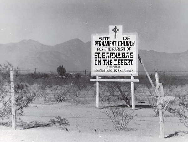 Приход был основан как миссионерская церковь в 1953 году, первая служба состоялась 15 ноября 1953 года[1][2]. Первоначально службы проводились в различных местах на частных владениях, пока не переехали в Куонсетский ангар, расположенный по адресу 132 W. Main Street в Скотсдейле, который был освящён 3 октября 1954 года[3][4]. Пол Л. Уэст был назначен первым настоятелем прихода в 1954 году, а первая служба в Церкви Св. Варнавы была проведена 3 марта 1954 года, в Пепельную среду[2]. К концу 1954 года миссионерская церковь была финансово самодостаточной[5]. 4 января 1955 года мистер и миссис Фаулер Маккормик пожертвовали землю на Мокингбёрд-Лейн в Парадайс-Валли, где находится нынешнее строение, очень близко к собственности, которую они позже передали городу Скотсдейл для железнодорожного парка МакКормик-Стиллман[2]. Участок в десять акров находился через дорогу от школы Джадсона[6].