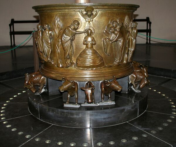 Сегодня в церкви находится большое количество произведений искусства. Среди них особое место занимает латунная крестильная купель с библейскими сюжетами, шедевр маасской школы, приписываемая Ренье де Юи (1107—18 гг.)[2].