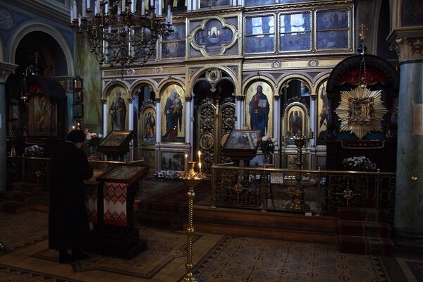 Четырёхъярусный иконостас установили венские мастера: столярную часть и резьбу иконостаса делал Карл Вормунд, все иконы писал Фридрих фон Шиллер.