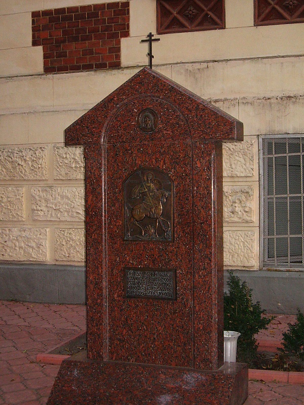 Текст таблицы (южная сторона) (современная орфография, русский язык): «Сия св. Церковь св. Великомученика Георгия основана, за старанием душ пастырей, исповедателей православной веры, во Львове дня 22 септембрия (4 октомбрия) 1897, сооружися иждевением Буковинского Православно-Церковного Фонда и освятися за благословением Его Высокопреосвященства, Митрополита Аркадия Чуперковича Его отпоручником, высокопреподобным о. Архимандритом Митрофором, Мироном Калическо, дня 14/27 октомбрия 1901 года. Создателем и приложникам Фонда блаженный покой и вечная память».