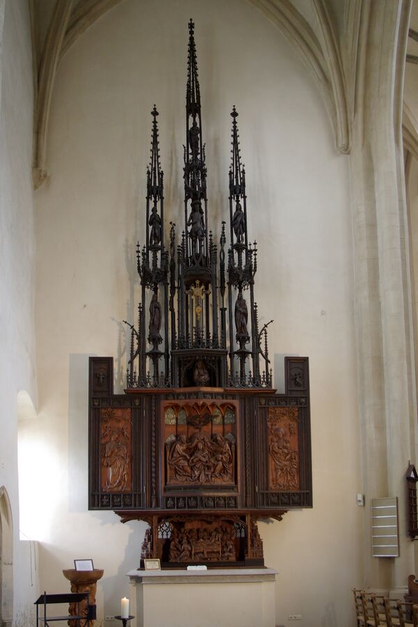 Со временем она стала протестантской. В 1485 году эту церковь освятили. В церкви есть алтарь крови Господней, выполненный знаменитым резчиком по дереву Тильманом Рименшнейдером из Вюрцбурга. Он получил этот заказ около 1500 года от городского совета Ротенбург-об-дер-Таубере. Его главным заданием и целью было создать алтарь, который бы подходил для одной реликвии. На алтаре изображена Тайная вечеря, Элеонская гора, Вход Иисуса Христа в Иерусалим. Считается, что этот алтарь — один из самых красивых на территории Южной Германии[1]. Работа над ним велась в период с 1499 по 1505 год[3].