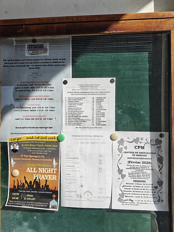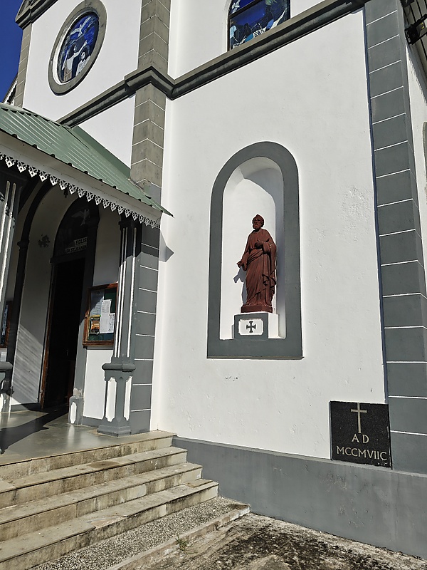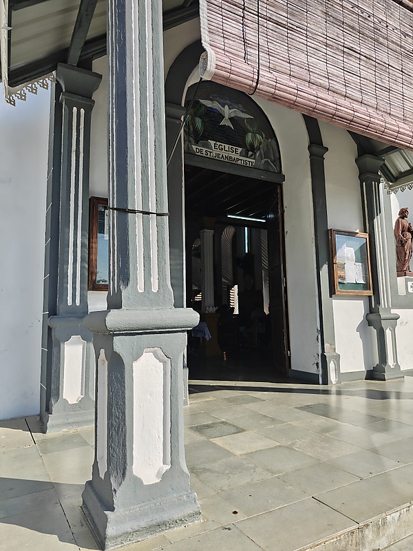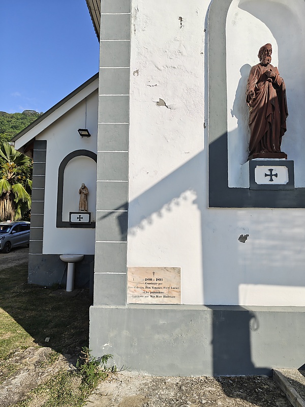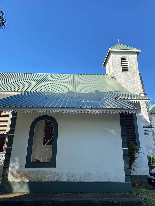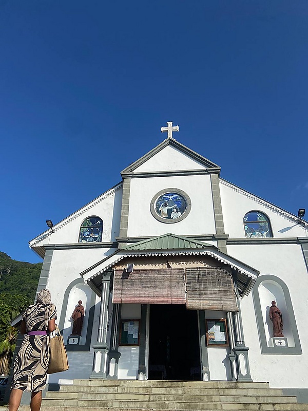 Фасад здания включает традиционные для сейшельских церквей элементы: