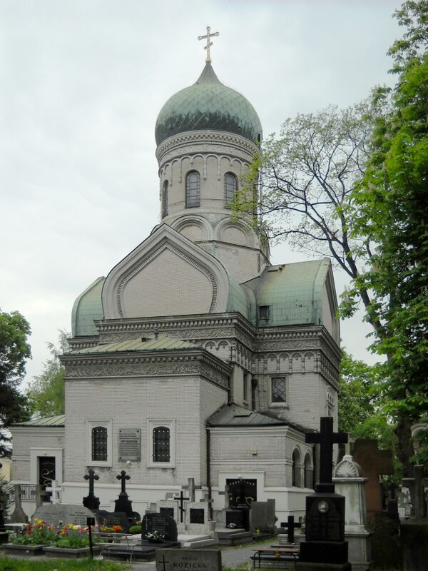 В 1834 году было решено создать близ Вольских укреплений православное кладбище. Первым в 1836 году был погребён Варшавский военный губернатор генерал Никита Панкратьев. В 1838 году кладбище было передано в духовное ведомство, а его официальное открытие совпало с освящением Владимирской церкви, переделанной из католического костёла. Однако церковь была неудобной — в ней было холодно и сыро, она не отличалась внешней красотой, к тому же её алтарь был обращён не на восток, как принято в православии, а на запад.