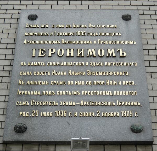 Храм был освящён 15 октября 1905 года епископом Иеронимом, и тогда тело Ивана Экземплярского перенесено из временной усыпальницы в крипту. Архиепископ Иероним скончался через две недели и был похоронен возле сына.