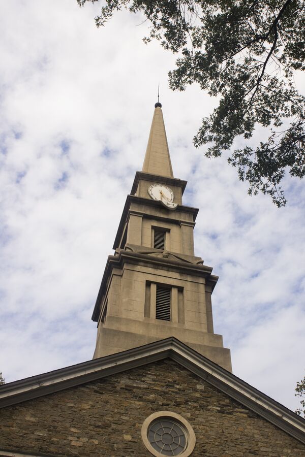 В 1828 году был возведён церковный шпиль в неогреческом стиле, дизайн которого приписывают Мартину Евклиду Томпсону и Итиэлю Тауну. Больше изменений произошло в 1835 году, когда был построен каменный приходской зал Джона К. Такера[3], а в следующем году (1836) сама церковь была отремонтирована, первоначальные квадратные колонны были заменены более тонкими в стиле египетского возрождения. Кроме того, в 1838 году была добавлена нынешняя ограда из чугуна и кованого железа; эти ремонты приписываются Томпсону[3][6]. Примерно в то же время была завершена двухэтажная воскресная школа из камня, и церковь открыла приходскую детскую школу для детей из бедных семей.