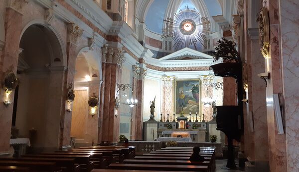Церковь была построена в 1654 году в честь святого Петра над средневековой цитаделью, которая была возведена Фридрихом I и восстановлена Людовиком IX в начале второй половины XIII века.[1] В конце XVIII века церковь была дважды разрушена и дважды отстроена снова. Нынешнее здание было построено между 1888 и 1894 и отремонтировано в 1903 году.[2]