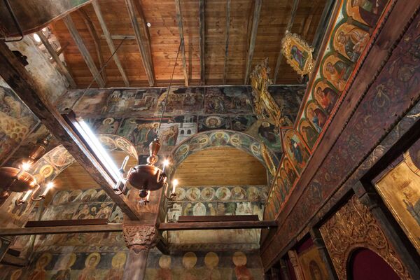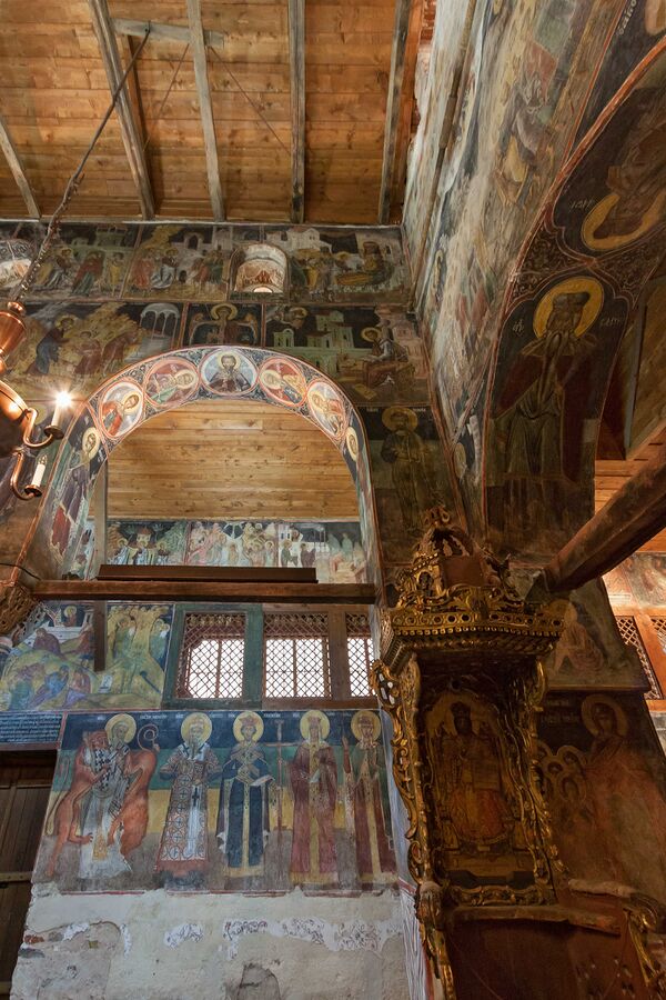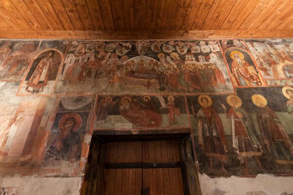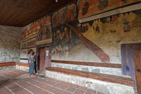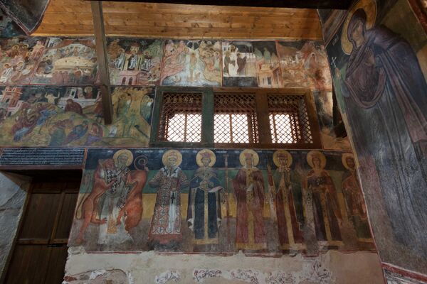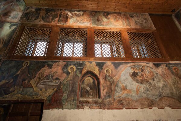 В церкви имеются более 1000 изображений в 258 композиций, на которых представлены сцены чудес Христа, приведенные по евангельским легендам. Характерные стили работ позволяют различать кисти трёх мастеров: двое работали в восточной части нефа, а третий — в западном. В начале XVIII века на восточной стене притвора была написана сцена «Страшного суда» в традиционной иконографии того времени.