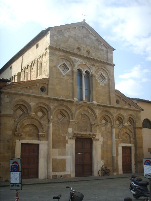 Романский фасад, относящийся к началу XII века, демонстрирует некоторые типичные черты средневековой пизанской архитектуры, такие как слепые аркады, ромбовидные арки и использование бихромных камней (присутствующих также в городском соборе). Верхнюю часть увенчивает большое окно в форме арок.