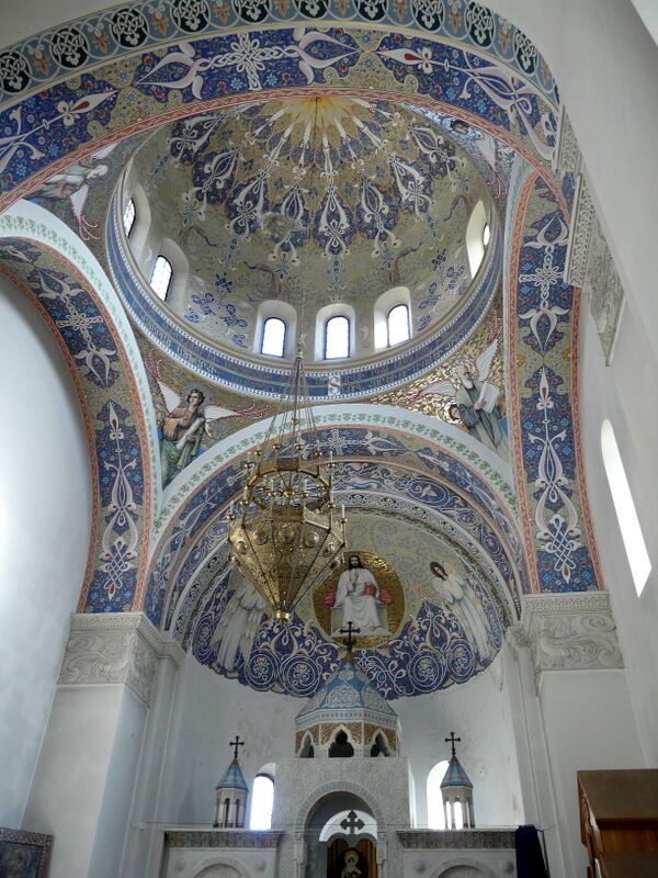 Для росписи церкви был приглашён известный армянский художник В. Суренянц (1860—1921). После многолетней подготовительной работы в 1917 году он переехал в Ялту и поселился рядом с церковью. Последовавшая вскоре эмиграция главного заказчика и прекращение финансирования работ, тяжёлая болезнь, смены власти существенно осложнили его работу. Художник успел окончить только роспись купола, он умер в 1921 году и был похоронен у стен церкви.