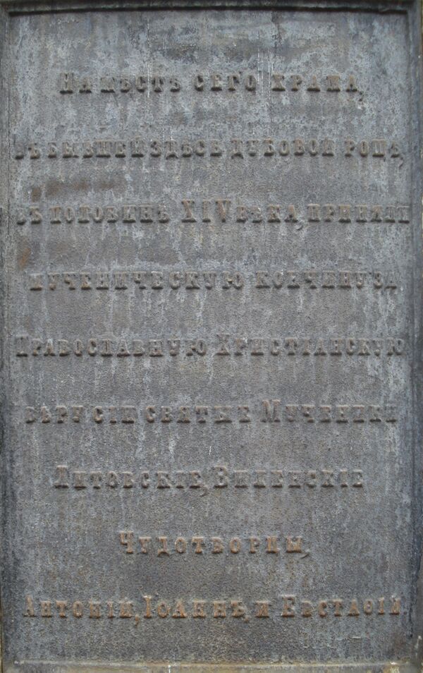По преданию, православный храм появился в дубовой роще уже XIV веке, спустя несколько лет после мученической казни виленских страстотерпцев Антония, Иоанна и Евстафия. На месте гибели мучеников собирались для молитвы христиане и соорудили здесь небольшую часовню. При содействии второй жены Ольгерда Иулиании на месте часовни была построена церковь во имя Святой Троицы, в которую были перенесены тела мучеников.