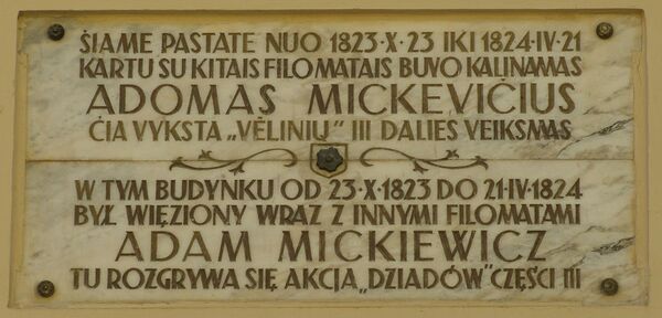 В послевоенные годы над входом в монастырское здание была установлена мемориальная таблица, затем в 1970 году её сменила другая таблица в память о том, что в этом здании содержались в заключении Мицкевич и другие филоматы и здесь разыгрывалось действие «Дзядов».