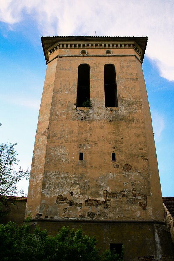 В плане колокольня почти квадратная (9,8 х 9,5 м), высотой в 22,5 м. Толстые стены (толщиной в 2,3 м) снаружи оштукатурены. Монументальные фасады сдержанных, лаконичных форм. В низком цокольном этаже располагаются небольшие окна прямоугольной формы. Второй высокий ярус со срезанными углами и высокими оконными проёмами с закруглёнными арками; над ними в фризе овальные ниши. Четырёхскатная крыша крыта черепицей.