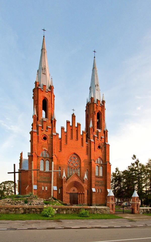 Новый католический храм из красного кирпича в неоготическом стиле по проекту архитектора Вацлава Михневича строился с 1909 по 1914 год. В ходе Первой мировой войны был серьёзно повреждён, в 20-е годы восстановлен. В память о событиях Первой мировой в стены храма были вмурованы снаряды. Повреждения зданию были нанесены и в ходе Второй мировой войны. После неё в храме был организован склад, зернохранилище, позднее — спортзал. В 1989 году храм передали верующим, после чего началась длительная реставрация здания, продолжающаяся по сей день.