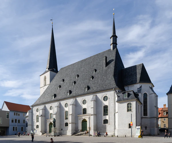 Первая церковь была построена с 1245 по 1249 год, но уничтожена пожаром в 1299 году. Остался только фундамент. Второе здание сильно пострадало во время городского пожара 1424 года. Нынешнее здание зального типа в стиле поздней «зондерготики», построено между 1498 и 1500 годами. Хор церкви служил местом захоронения членов дома Веттинов в герцогствах Эрнестины. В 1525 году церковь Петра и Павла стала лютеранской, и Мартин Лютер читал там проповеди[5].