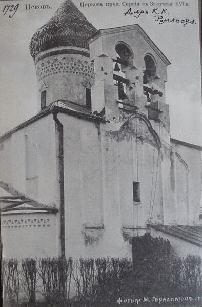 - Обновленный храм преподобного Сергия в Пскове. П. Сладкопевцев. Храмы и монастыри губернского Пскова: сборник дореволюционных публикаций. Сост. и авт. вступ. Н. Ф. Левин. Псков. 2005 г.