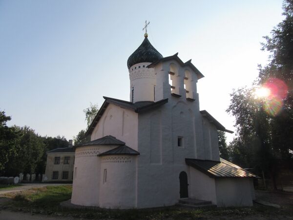 - Построена между 1582 и 1589 годов в связи с переносом Сергиевского монастыря из посада под защиту городских стен при приближении войск Стефана Батория. Вокруг церкви было небольшое монастырское кладбище.