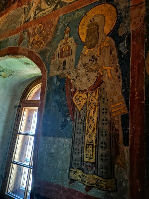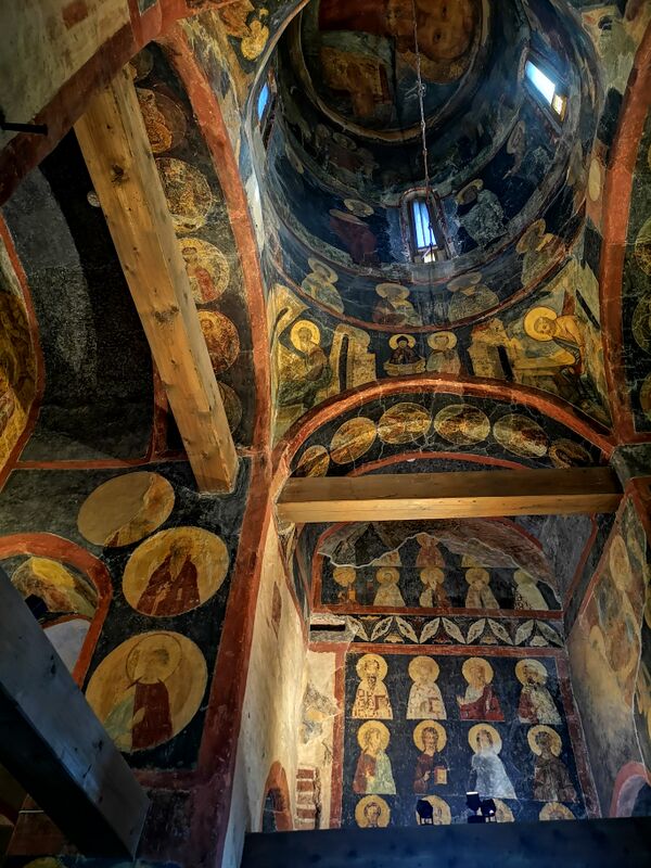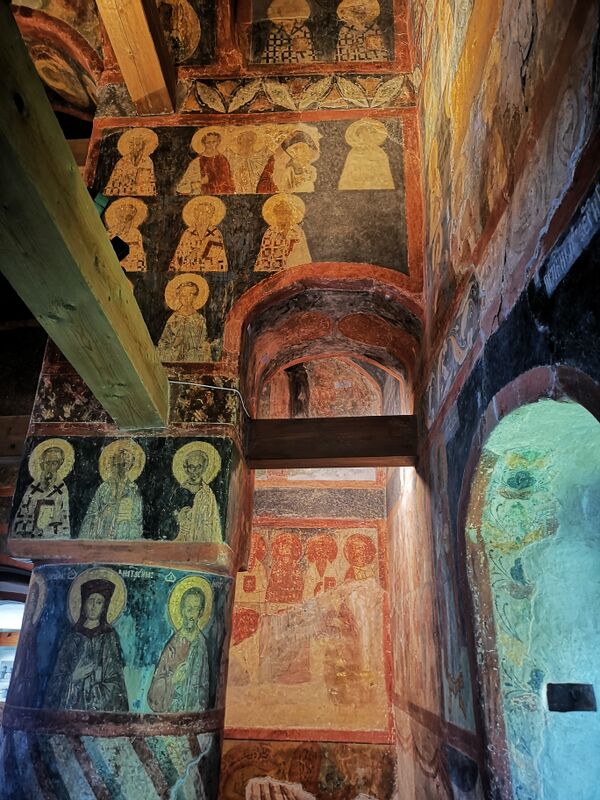 В XVII или XVIII веке в храме появились хоры, что стало причиной утраты большей части фресок на западной стене.