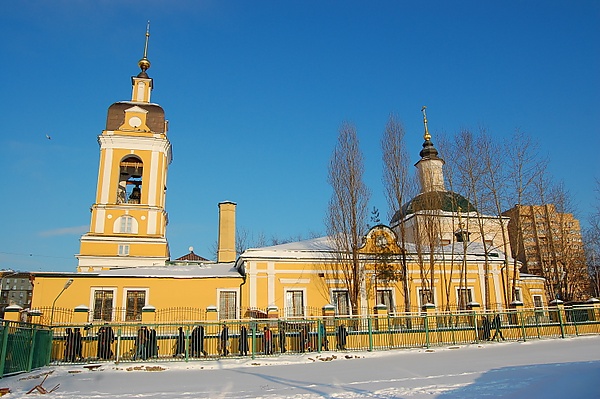 | Церковь Сорока мучеников в Новоспасской монастырской слободе с колокольней. | |