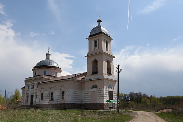 Новый однокупольный храм был построен в 1830 году, и в этом же году освящён. До настоящего времени имеет два придела: справа — во имя иконы Всех Скорбящих Радости, слева — во имя Святого Николая Чудотворца. Иконостасы всех трех алтарей были трехъярусными. Прежний деревянный храм с 1830 года был упразднен, но оставался на месте неразобранным до 1850-х годов.