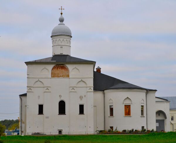 Основной объём церкви перекрыт полусферическим куполом на тромпах. Такой свод был применён в новгородском зодчестве впервые. Трапезная палата имеет большие залы на обоих этажах, в них сводчатые перекрытия, опирающиеся на столбы в центре залов. Столбы первого этажа квадратные, второго — восьмигранные. Северный фасад церкви и трапезной закрыт поздним приделом Тихона Задонского, а западный фасад трапезной — пристройкой 1830-х гг. Первоначально к трапезной палате примыкала ещё келарская палата, следы которой обнаружены в процессе исследований[1].