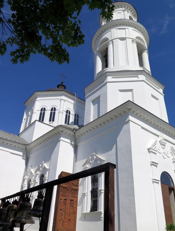 Храм венчает восьмигранный купол с высокими парными окнами. Сдвоенные окна разделены между собой расположенными на гранях барабана колоннами. Вход в храм оформлен в виде укороченных поперечных ветвей креста и имеет четырехколонные портики с фронтонами, как это выполнено в бывшем соборном храме Григора Лусаворича в Ростов-на-Дону (храм снесен), а также в церквях Аствацацин, монастыре Сурб-Хач в Нахичевани и Карапета в с. Несвитай.