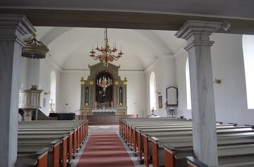 Коврик для хора был подарен церковным швейным объединением. Он был выполнен Хиллеви Нильсон-Кьельхардом[2].