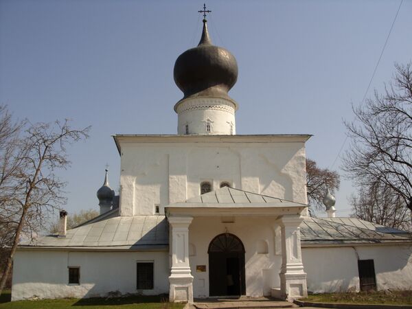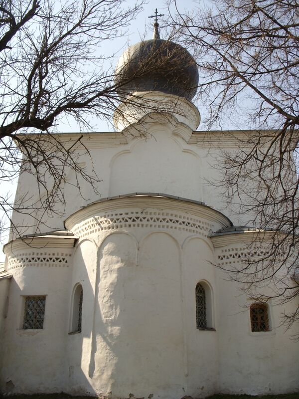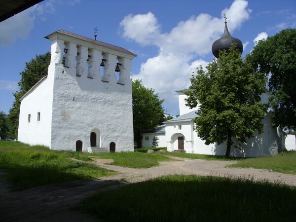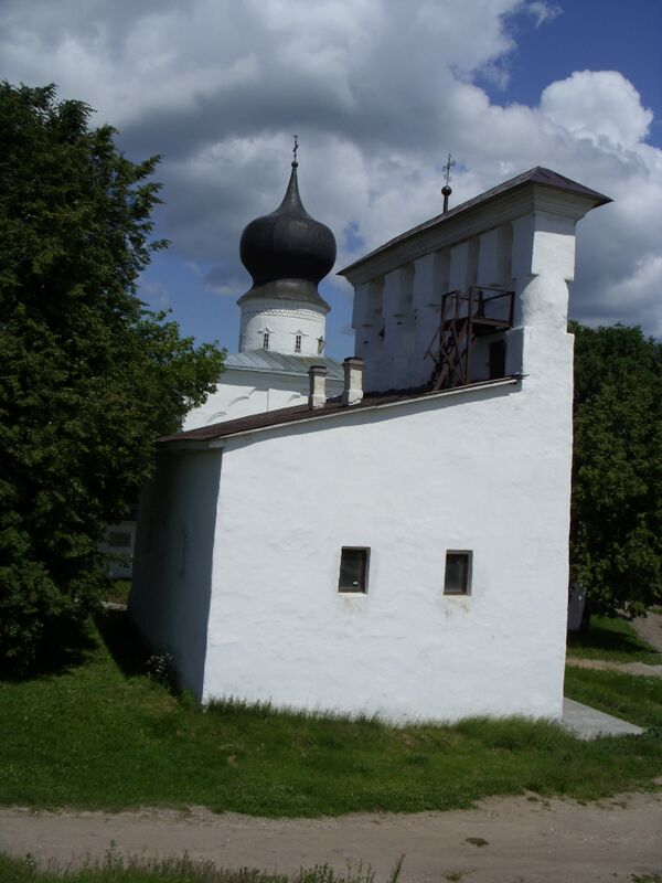 Churches of the Pskov School of Architecture. Church of Dormition s Paromenya (near the ferry) with a belfry, 1521 (Храмы псковской архитектурной школы. Церковь Успения с Пароменья со звонницей) |