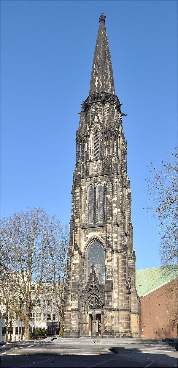 Церковь Христа была сооружена в 1877—1878 годах по проекту крефельдского архитектора Августа Хартеля, руководил строительными работами местный архитектор Генрих Швенгер. Возведение 72-метровой башни было завершено 24 октября 1878 года.