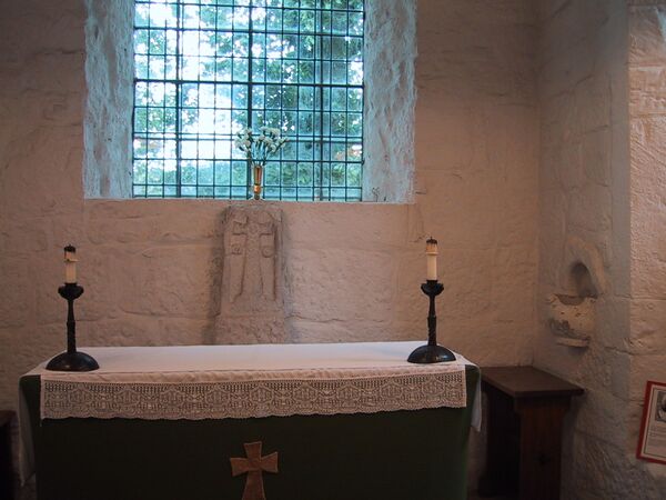 Высокая и узкая алтарная арка является доминирующей чертой в интерьере. Она сильно напоминает римские постройки в Честере, являвшиеся составной частью Адрианова вала, что в дополнение к следам римских приёмов обработки камня подтверждает связь англосаксонской церкви с римскими стройматериалами. Формы арки по-римски просты и массивны, импосты украшены лишь фасками, клинчатые камни — совершенной геометрической формы с радиальными швами[3], в отличие от обычных в англосаксонской архитектуре арок из кирпича с менее упорядоченным рисунком швов. В ходе реставрации 1880 года в щипцах церкви обнаружены фрагменты резных каменных крестов[4] Хексамского стиля, которые попали в кладку, вероятно, при предыдущих ремонтах и перестройках.