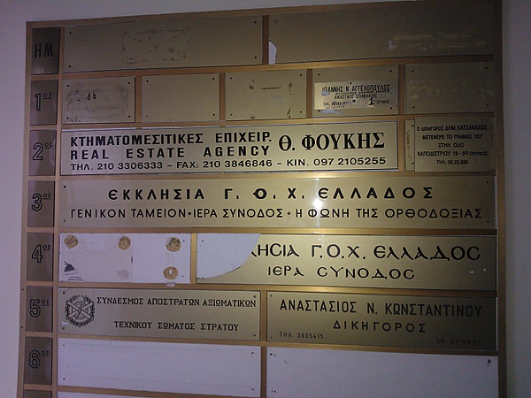 Синодальная резиденция, а также канцелярия Синода и редакция официального органа Синода — журнала «Φωνή της Ορθοδοξίας» («Голос Православия») находятся в одном из жилых домов Афин, в районе Омония (ул. Канингос, 22).