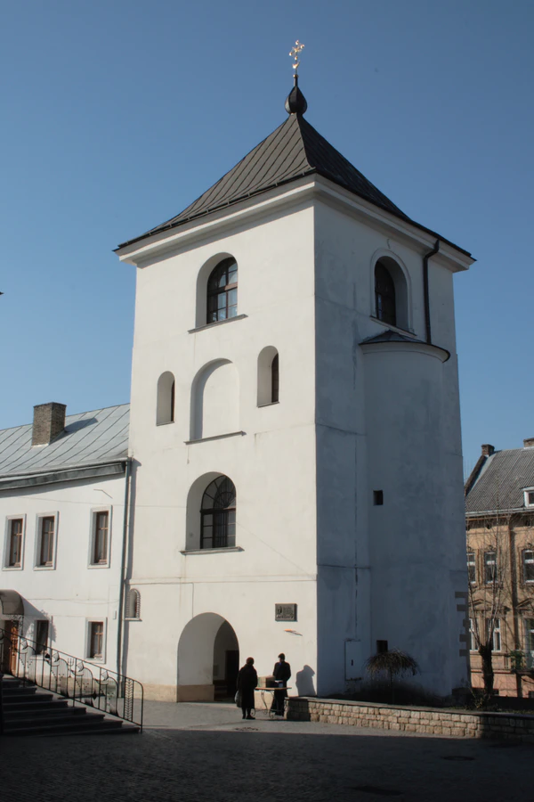 Возле монастыря, на кладбище, которое существовало с княжеских времён, в 1583 году был похоронен первый кногопечатник Иван Фёдоров (он напечатал свой «Апостол» в 1574 году, в книгопечатной мастерской, которая до 1615 года находилась в монастыре).