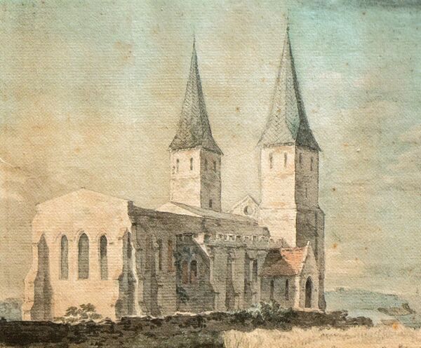 Оригинальный текст (англ.)[показатьскрыть]the young clergyman of the parish, urged on by his Philistine mother, rashly besought his parishioners to demolish this shrine of early Christendom. This they duly did and all save the western towers, which still act as a landmark for shipping, was razed to the ground.— Nigel & Mary Kerr "A Guide to Anglo-Saxon Sites" (1982)[141]