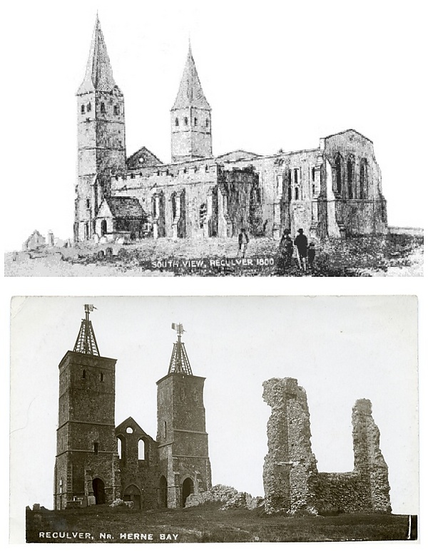 - Pridden, J. (1809), Reculver Church, N.E., The Gentleman's Magazine, vol. 79, Plate I, ISSN 2043-2992