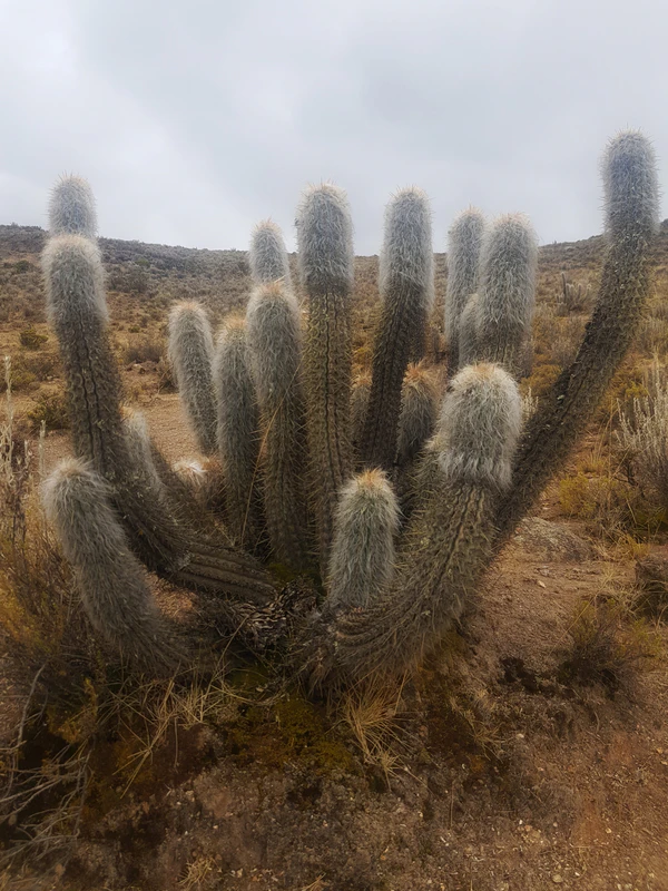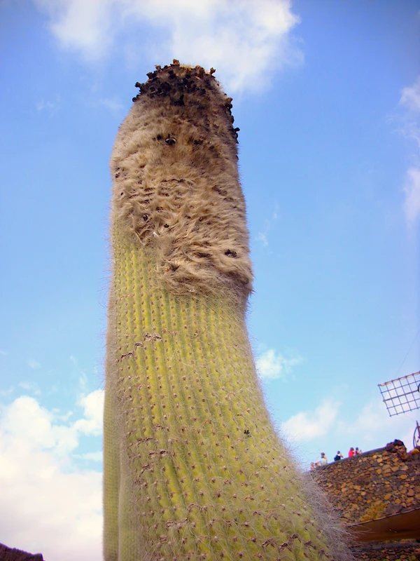 Обильное белое опушение кактуса представляют собой видоизмененные колючки, благодаря которым многие экземпляры вида кажутся почти белоснежными. Опушка служат для защиты растения от морозов и солнца. Однако белые волоски — это только радиальные колючки кактуса; они скрывают огромные острые жёлтые центральные шипы в противоположность кажущимуся безобидным внешнему виду опушённого покрова растения[5].