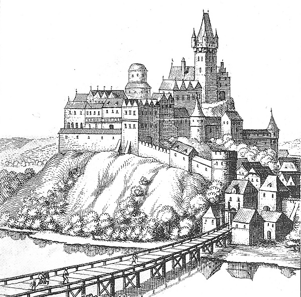 Готический замок был поделен на верхнюю и нижнюю части. Нижний замок был трёхэтажным (с подземельем), имел башни с пушками, подсобные помещения, арсенал и конюшни. Верхний замок состоял из жилых домов с репрезентацийными княжескими палатами. Старая ротонда, служившей замковой часовней, находилась во дворе, который был окружен тройной стеной с башнями. Кроме часовни, в подворье находилась башня, которая сохранилась по сей день. Башня была местом последнего пристанища в случае нападения врагов, а также выполняла жилые, тюремные и сторожевые функции.