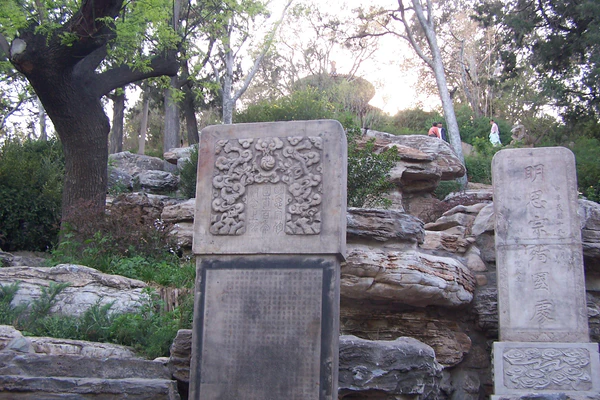 Последний правитель империи Мин Чжу Юцзянь покончил жизнь самоубийством, повесившись здесь в 1644 году.