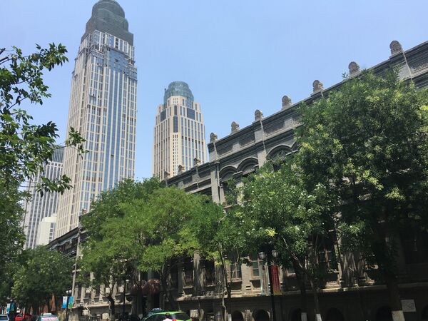 Комплекс Цзиньвань-Плаза построен в 2011—2017 годах в стиле постмодернизма, на начало 2020 года башня № 1 являлась четвёртым по высоте зданием города, 89-м по высоте зданием Китая, 106-м — Азии и 177-м — мира. В состав комплекса входят три высотные башни, а также другие здания, в которых расположены магазины, рестораны, театры и музеи.