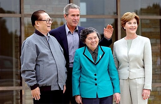 Летом 2004 года журналистом Джозефом Каном в «New York Times» отмечалось, что хотя Цзян оставил высшие государственные и партийные должности (за исключением главнокомандующего ВС КНР), «он сохранил за собой последнее слово в самых деликатных вопросах внешней политики, а также некоторых острых внутриполитических спорах», подчёркивалось, что «Ху проявляет к Цзяну подчеркнутую почтительность, пропуская его вперёд на официальных мероприятиях, хотя номинально Ху выше него по должности. Когда Ху и Цзян совместно принимают высокопоставленного гостя из-за рубежа, высказывания г-на Цзяна зачастую освещаются подробнее»[13].