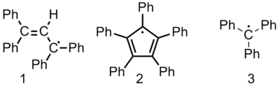 Ещё будучи докторантом в Марбургском университете, Циглер опубликовал свою первую большую статью, в которой показал, как галохромные (R3C+Z-) соли могут быть сделаны из карбинолов. Предыдущая работа оставила впечатление, что галохромные соли или свободные радикалы (R3C•) должны иметь необходимый фрагмент R, чтобы быть ароматическими. Это сподвигло его попытаться синтезировать аналогично замещенные свободные радикалы и успешно подготовить 1,2,4,5-тетрафенилаллил в 1923 году и пентафенилциклопентадиенил в 1925 году. Эти два соединения были гораздо более стабильны, чем предыдущие свободные радикалы трёхвалентного углерода, такие как трифенилметил. Интерес к стабильности трёхвалентного углерода свободно-радикальных соединений привел его к первой из многих публикаций, в которых он стремился выявить стерический и электронный факторы, ответственные за диссоциацию гексазамещенных производных этана[17].