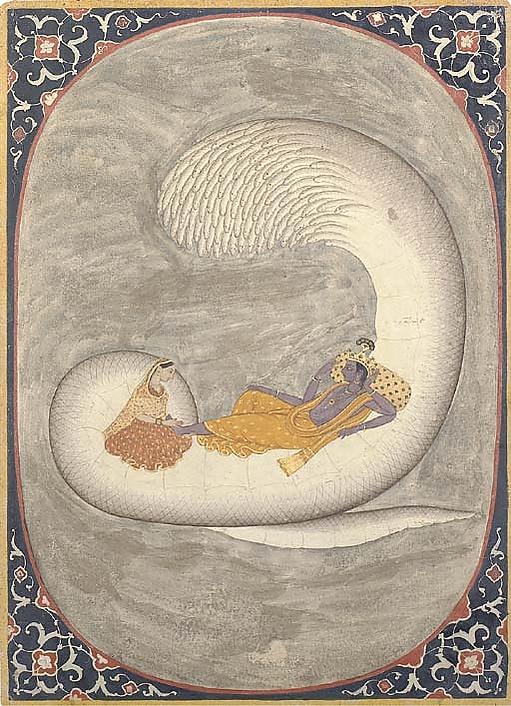 Иногда «Вечное время» изображают в виде змея Ананта-шеши[1]. Согласно «Бхагавата-пуране», Шеша — это аватара Бога[2], также известная по имени Санкаршана. В Пуранах описывается, что Шеша поддерживает на колпаках своих голов все планеты Вселенной и постоянно занят воспеванием славы и имён Вишну своими бесчисленными устами.