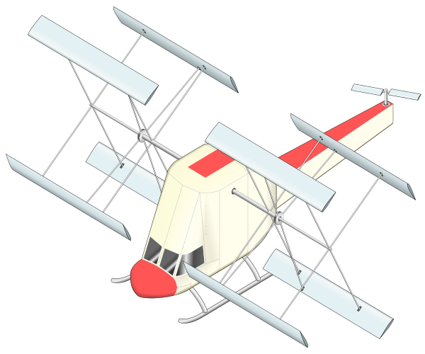 В 1976—1980-х годах Марсель Шабоне запатентовал тягово-несущие роторы (патент Франции № 76.39820, 1976; патент США № 4210299, 1977—1980). Использованы двухлопастные. Предусмотрено два варианта. В первом случае изменение установочного угла атаки «автоматическое» — лопасти свободно болтаются между ограничителями под действием аэродинамических и/или центробежных сил. При движении лопасти вниз создаётся подъёмная сила, при движении вверх — толкающая. При этом в нижней части цикла установочный угол меняется резко, с ударом. Поэтому ограничители, по замыслу автора, должны быть эластичными. (см.выше патент ветродвигателя). Во втором случае угол атаки управляется «программно», при помощи профилированных кулачков. Предполагается иметь разные наборы кулачков для разных режимов полёта (взлёт, набор высоты, крейсерский режим, снижение, посадка). Стиль механики чем-то напоминает лентопротяжный механизм магнитофона 60-х годов. И ещё одна важная деталь: стабилизатор, при наличии такового, предполагается вынести вперёд, чтобы он не попал в воздушный поток от роторов[4][5].