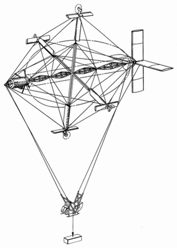 Американец Артур Кримминс в 1980—1984 годах запатентовал (патент США № 4482110) очень оригинальную конструкцию летающего крана — дирижабль-цикложир. при этом собственный вес аппарата уравновешивается подъёмной силой аэростата, а вес груза — подъёмной силой цикложирных крыльев. Осью цикложирного ротора служит ось дирижабля, вокруг которой вращаются на поворотных пилонах (играющих также роль лопастей воздушного винта) крылья и винтомоторные установки. Аппарат может принимать конфигурацию «классического» дирижабля, «классического» цикложира и все промежуточные. Благодаря этому отсутствуют ограничения на ориентацию вектора тяги — весьма нужное для летающего крана свойство. Большие размеры конструкции, характерные для аэростатов, позволят разгонять ротор до довольно высокой окружной скорости при умеренных центробежных нагрузках, что снижает влияние ряда недостатков классических цикложиров[4][5].