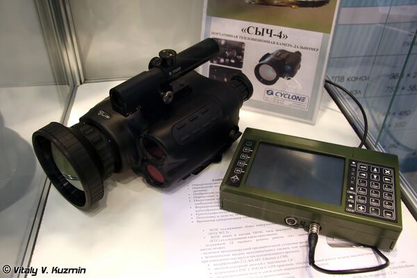 Камера работает в инфракрасном диапазоне и оснащена дорогостоящей высококачественной оптикой на основе элемента германий, поскольку тепловизоры работают в длинноволновом инфракрасном диапазоне, где обычное стекло непрозрачно.[12] В тепловизоре-дальномере «Сыч-4» используется передовая технология неохлаждаемых микроболометров. Электронная угломерно-дальномерная сетка позволяет оценить дальность до объекта и угловые координаты.